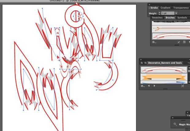 Aras de la demostración, estoy usando un cliché preestablecido 'bandera' de la biblioteca de patrones de pincel en Illustrator pero debe mencionarse en el menú pincel hay una opción para un 'nuevo cepillo' que si selecciona 'pincel de patrón' de la carpeta, puede activar cualquier grupo de vectores que hayas creado o muestreado en un cepillo que puede utilizar esta técnica.