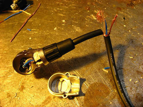Los conectores de grasa grandes son conectores de 8 vías de Neutrik. Esto significa que con un movimiento de bloqueo de giro solo soy conectando 8 cables diferentes entre sí y permitiendo 8 diferentes circuitos funcionar.