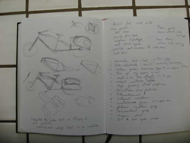 Llenar su cuaderno, identificar cuáles son las características claves, pensando en el aspecto visual general. Una de las características claves que iba con los pescados de Choprical era un crucero relajado / mirada de chopper que era todavía capaz de llevar un potente sistema de sonido y subir colinas.