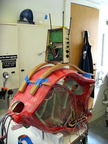 Después de montar los estantes del cargo de bambú para el ciclo del alma, había tallada de un bloque de espuma en forma de asiento, luego lo glassed y montan a las barras utilizando hardware de acero inoxidable.