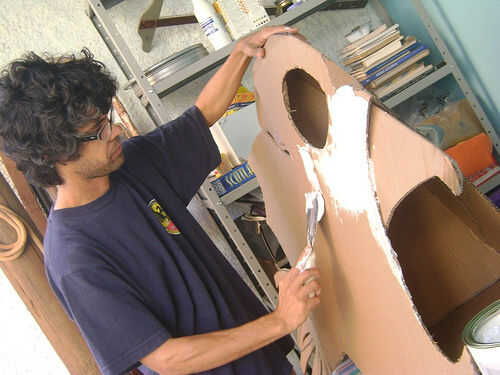 Em seguida, recorremos à corrida de massa, para eliminar como imperfeições. Esse passo foi necessário porque queríamos dar um acabamento mais cuidadoso para o peixe. ¡ MUITA lixa e limpeza em seguida e temos o peixe inteiramente branco. Depois UE pintei o peixe, usando um compresor de ar. Minha idéia era deixá-lo com essas núcleos, descobri na minha pesquisa sobre o esqueleto dos peixes. Essa imagem foi obtida com um contraste químico inserido no peixe antes de se realizar uma tomografia. O efeito é muito bonito. Mais escuro nos contornos no lo ningún centro. Un iluminação no teatro vai dar o efeito deste contraste.