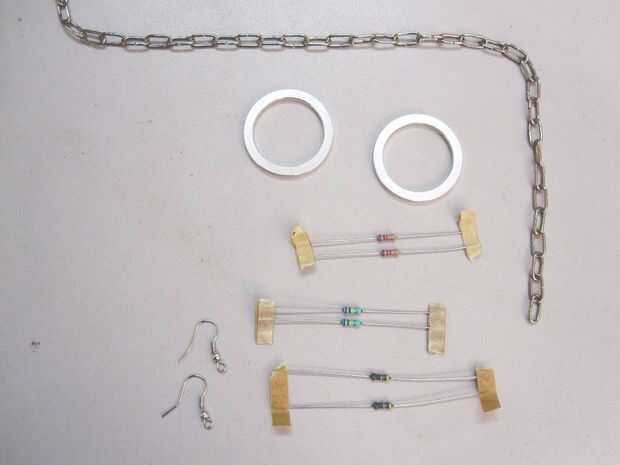 -alguna cadena con un tamaño de acoplamiento adecuado, o dos anillos o cualquier otra forma que se te ocurra para sujetar los aros a los ganchos de oreja