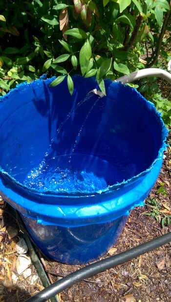 - Mina ajusté para que cubo del perro llena en unos 15 minutos y regar mi jardín durante unas 2 horas todos los días, excepto cuando llueve. De esta manera el cubo se llena y vacía toda el agua vieja en el cubo hacia fuera cada vez que riego mi jardín.