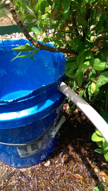 Es importante que el agujero en la parte superior y no el fondo de la cubeta. Si se corta el agujero en la parte inferior de la cubeta el agua corra hacia fuera cuando usted cierre el grifo! - Ajustar su flujo de agua de inicio con dos cierres de splitter todo el camino de.