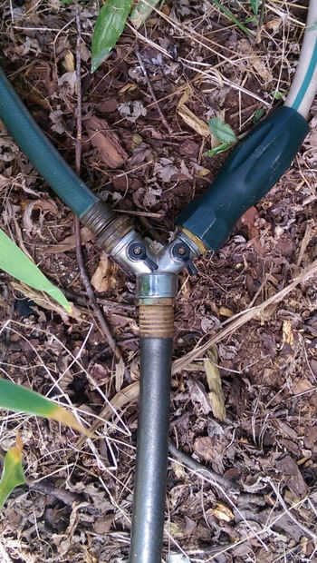 - Conecte la manguera existente a la salida de un divisor, conecte la manguera del donante a la otra salida del splitter.