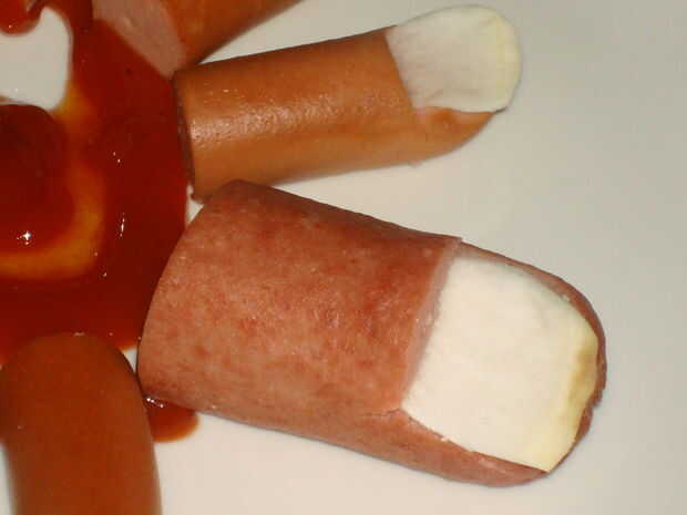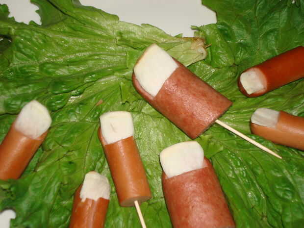 Una divertida idea para tu Halloween Haz reuniones!Fuente: http://www.rhodesbread.com/Recipes/View/2461Impresión: http://www.rhodesbread.com/recipes/print_recipe/2461Paso 1: ingredientesRollos de cena Rhodes, descongelado pero fríoperros calientes de