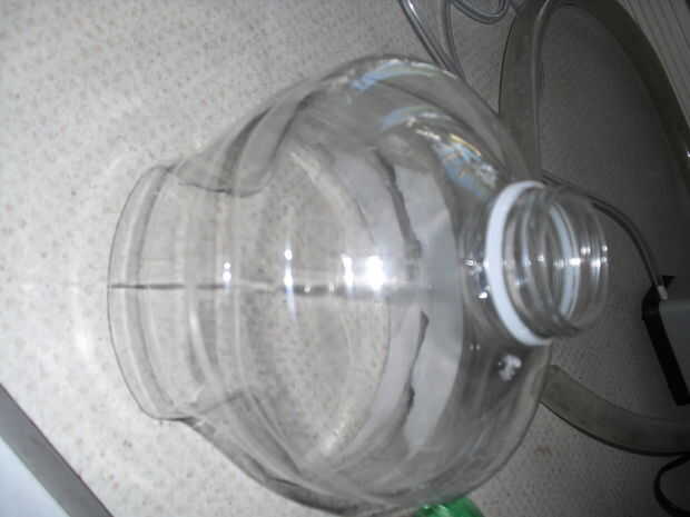 -Tome el frasco más grande corta unos agujeros para drenaje y uno lo suficientemente grande como para poner la línea aérea a través de los orificios deben ser cerca de donde está la tapa.