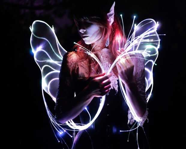 Fibra óptica se puede utilizar para hacer muchas clases de proyectos de iluminación, pero para este Instructable voy a centrar sobre su uso en accesorios personales, ya es mi área de especialización. Fibra óptica son también especialmente grandes para ropa, trajes y accesorios ya que permiten distribuir la luz de una sola fuente, por lo cual su proyecto requieren de pocas luces y menos energía (siempre una consideración importante al diseñar wearables). Porque las fibras pueden llevar luz lejos de la electrónica que es la fuente de iluminación, también son ideales para proyectos que deben ser a prueba de mal tiempo o lavable.
