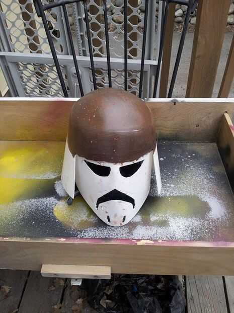 Una vez que el casco es lijar a suavidad, deberás rociar capa clara o cartilla. Puede obtener cartilla clara en la mayoría de las ferreterías y Walmart. Sólo funciona cerca de $7,00 a can. Usted sólo necesita uno puede de capa clara y uno puede de pintura en aerosol blanco brillante de este casco.