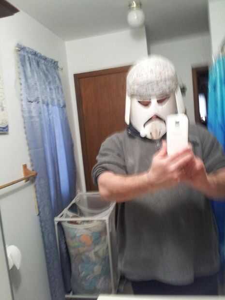 Siguiente paso es para asegurarse de que se adapta a su casco en la cabeza! Si la placa es un poco demasiado apretada, simplemente utilice su pistola de calor y presione la zona de la nariz y el ojo hacia afuera un poco. Asegúrese de usar los guantes de cuero y sólo calentar el interior del placa frontal del casco. Utilizar la longitud del dedo indicador para moldear el plástico.