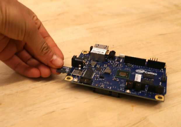 - Enchufe la fuente 5V en conector de barril de 5V de Galileo antes de cualquier cosa o Consejo podría freír.