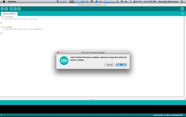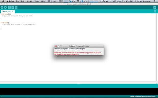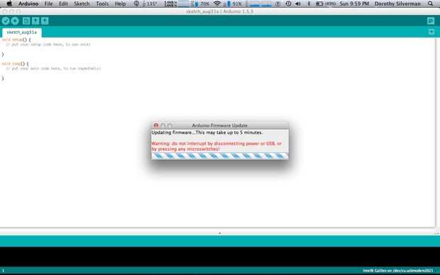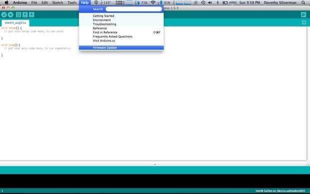 - He descargado y había descomprimido el controlador Galileo para OSX. Este controlador es básicamente un IDE para el Galileo basado en el entorno de Arduino.