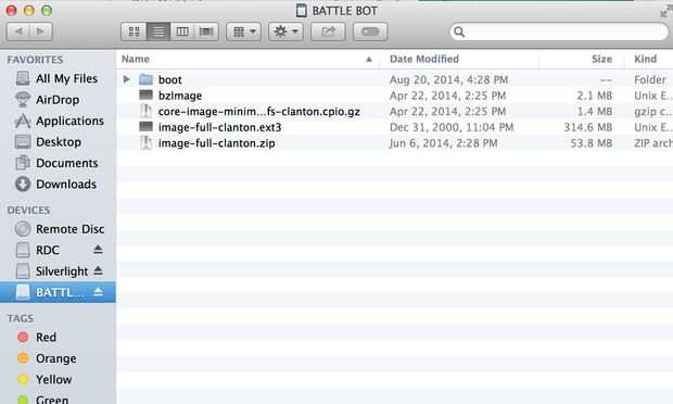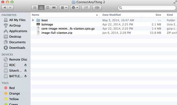 Ahora la tarjeta micro SD está lista para ir! Introduzca en la Junta de Galileo. Como una prueba para asegurarse de que está funcionando el WiFi, conecte la antena de escritorio para la tarjeta WiFi y el Galileo del enchufe en la pared. Si funciona correctamente, deben encender tres luces: una luz amarilla junto al poder, una luz naranja en el conector de ethernet y una luz amarilla cerca del conector del host usb. Debe ver la red ConnectAnything en su ordenador en pocos minutos. Abra su navegador web y vaya a "gatos.com". Usted debe ver el entorno que se muestra en la imagen de arriba.