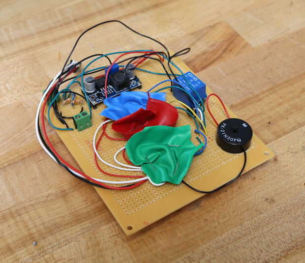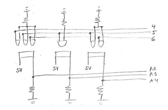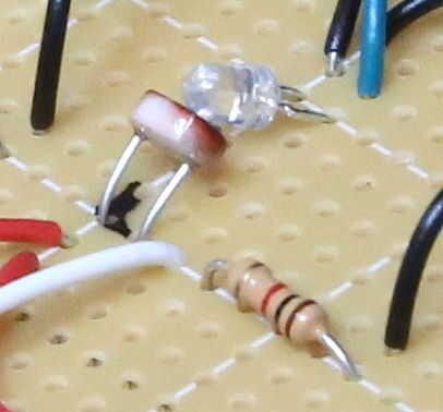 Los interruptores ópticos ayudan a traducir los comandos, "forward", "gire a la izquierda", "gire a la derecha" y "stop" en ConnectAnything a los comandos que el escudo del motor puede comprender. Aisladores ópticos se utilizan para que múltiples diodos pueden ser excitados con la una sola entrada-salida de entrada. También se utilizan para evitar el contraflujo actual que potencialmente podría excitar otros pines I/O de entrada, que arruinan los comandos. Me encargo hace aisladores ópticos así podría tener múltiples LEDs brillantes en una sola célula fotoeléctrica (opto-aisladores estándar se pueden comprar tienen sólo una fotocélula por LED). Cubrí cada paquete de LEDs y fotocélulas con un pedazo de globo de goma. Aseguró la goma a la Junta por las grapas a través de la protoboard de la perforación y soldadura hacia abajo.