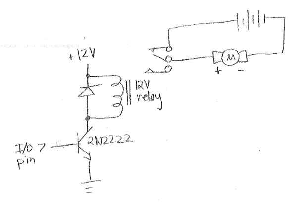 Usé un circuito controlador de relé para el control de la bomba neumática. Un circuito controlador de relé utiliza baja potencia como un interruptor para dispositivos de control que requieren una fuente de energía más grande. En este circuito, pin de I/O de Galileo 7 se utiliza para conectar y desconectar la bomba de 12V. He utilizado un relé mecánico de 12V, que era probablemente exagerada. Yo pude han utilizado un relé de estado sólido más pequeño o el transistor puesto que la bomba sólo requiere como máximo 300mA.