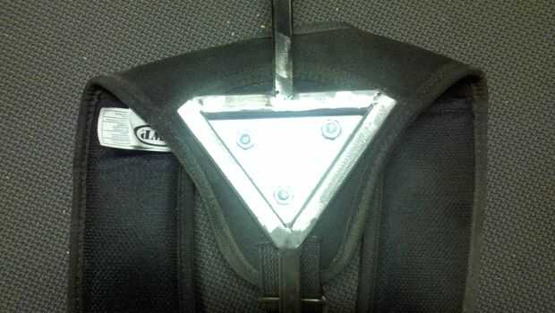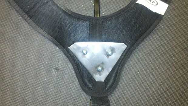 Sé que la plataforma se ve algo desgarbada me pero fue diseñado para seguir la forma de la espalda de mi esposa y el cuello. Llevaba en la parte superior de una debajo de la camisa y luego otra camisa sobre la plataforma. Tiene trenzas largas que oscurecen totalmente la parte inmediatamente detrás de su cabeza. El acero que se extiende por encima de su línea de cuello es negro al mezclarse con su cabello y hacerlo menos visible en la noche pintado mate.