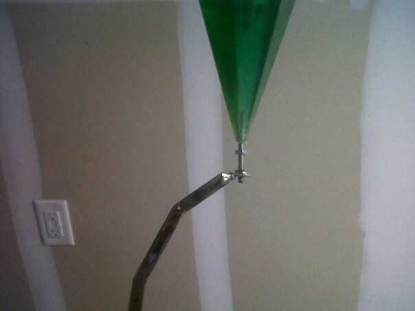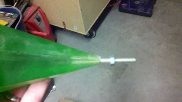 Para sujetar el plumbob a la plataforma de corte una pequeña sección de la parte inferior del diamante, perforó un agujero de una barra de 1/4" hilo de rosca y ajustaron en su lugar.  La plataforma tiene una tuerca de 1/4" soldada a la parte superior de lo que pase a la barra en.