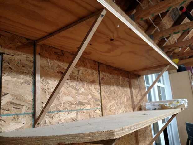 Crear simples pero muy fuerte la estantería con pisos de madera dura o cualquier otra madera dura. Puede encontrar paletas de cualquier parte si buscas sólo para ellos. Aquí es una gran guía para encontrar paletas.