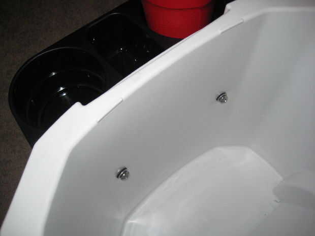 He perforado dos agujeros a través del sostenedor de taza y parte delantera del refrigerador y usado acero inoxidable tornillos y arandelas autoadhesivas de neopreno con refuerzo metálico (digamos 10 veces real rápido) en el interior de la nevera para mantener el agua salga y había asegurado con tuercas de fijación en el exterior de nylon de acero inoxidable. Remaches pop pueden han trabajado así, pero yo desconfiaba que podrían tirar de la pared exterior plástico suave de la nevera Si el sostenedor de taza se golpeó duro contra algo mientras se transportan o tirar la nevera.