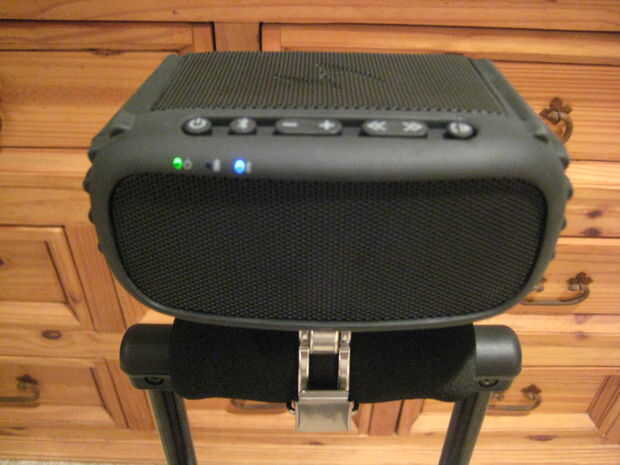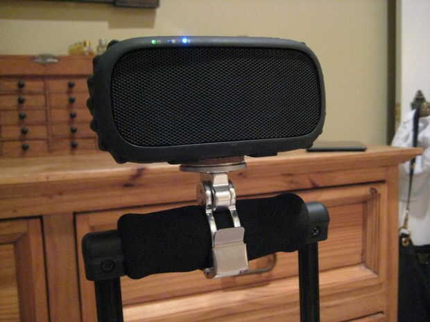 Yo había estado utilizando iMain ir 2 altavoces con mi viejo iPhone para suministrar las melodías para mi esposa y yo en la playa pero como ahora tengo un mucho mayor Samsung Galaxy Nota 2 que no se ajusta dentro de la caja de altavoz con cremallera, decidí actualizar a un altavoz de bluetooth impermeable, Grace Digital ECOROX . Es muy pequeño y portátil y es apenas el tamaño correcto para mí y mi esposa en la playa. Tiene reproducción/pausa, pista y controles de volumen en el altavoz por lo que una vez que empiece la música puedes poner el teléfono lejos. Otra razón que escogí es que tiene un tornillo de montaje de cámara-estilo estándar. Compré este soporte de Manillar, montaje de la cámara Minoura (22-29 mm) por lo que se podría sujetar el altavoz a nuestro poste de silla o sombrilla de playa, pero también decidió probar en la manija del refrigerador. El mango era un poco demasiado flaco así que compré un mango de caña recambio de neopreno en mi farmacia local de Kroger y desenroscar el mango de plástico de la nevera y se deslizó la empuñadura de neopreno sobre él. Ahora el ECOROX firmemente sujeta a la manija del refrigerador. Una ventaja es que después de nuestro viaje puedo sujetar el altavoz a los manillares de la bicicleta o incluso usarlo en la ducha ya que es resistente al agua.