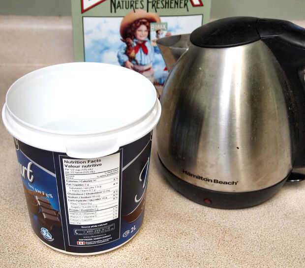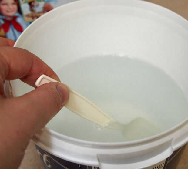 * Mi envase de helado es plástico #5 (polipropileno) que tiene un punto de fusión superior a 130oC, por lo que puede manejar agua hirviendo. Pero cristal es preferible que tengas ya que se puede ver mejor cuando la solución está saturada y se puede ver la forma de cristales.