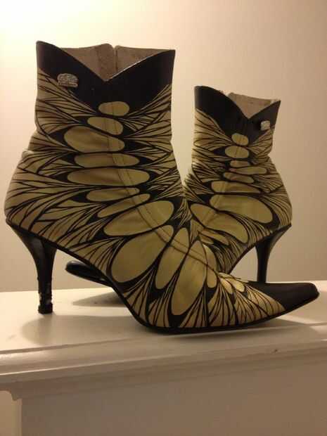 he pintado encima de unos tacones patente Beat-up después de ser inspirado por un cuadro en reddit. Iba a utilizar esmalte acrílico, que probablemente habría funcionado de maravilla, pero siendo este un arte de última hora, decidí usar esmalte de uñ