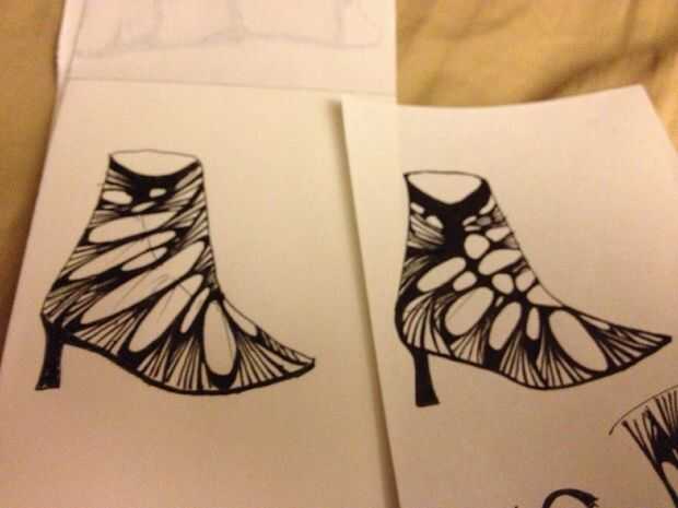 Elegir un zapato que tiene algunas de las características que usted desea (silueta total, superficie, materiales viables etc.). Dependiendo de sus deseos de personalización total, puede variar su elección de calzado. Elegí estos porque son de cuero y tienen una gran superficie para la pintura. Una vez escogida la base, haciendo un bosquejo ayudará en el proceso de preparación. Brain storming y conceptualizar su diseño permitirá bocetos. No te desanimes, sólo sigue el dibujo hasta que estés satisfecho con el diseño.