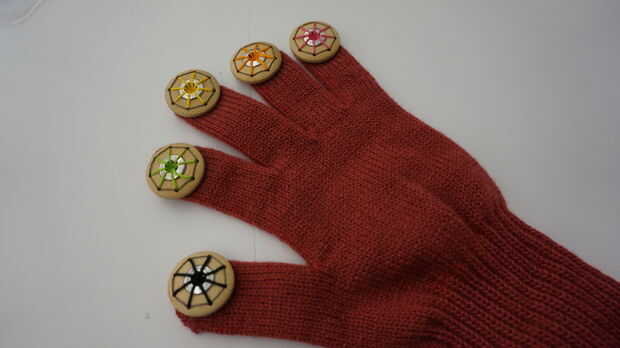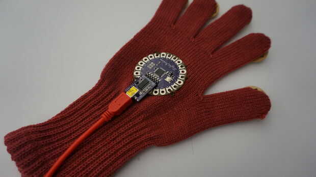 En este proyecto, me he centrado en un diseño estético. Por lo tanto, cosí hilos conductores a formas invisibles. Normalmente, cuando hacen una especie de guantes LilyPad, coser la superficie externa. Pasé mucho tiempo en esta sección.