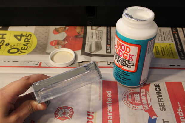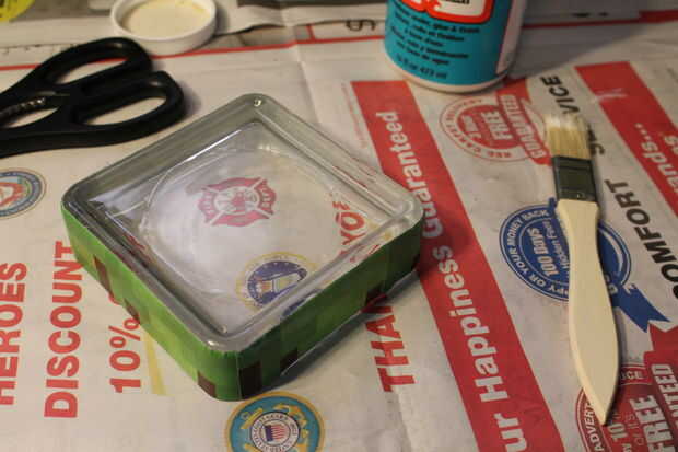 Centro de su abertura en el mod podge y suavemente (palabra clave suavemente!) suavizar cualquier burbuja y asegúrese de que está bien colocado.
