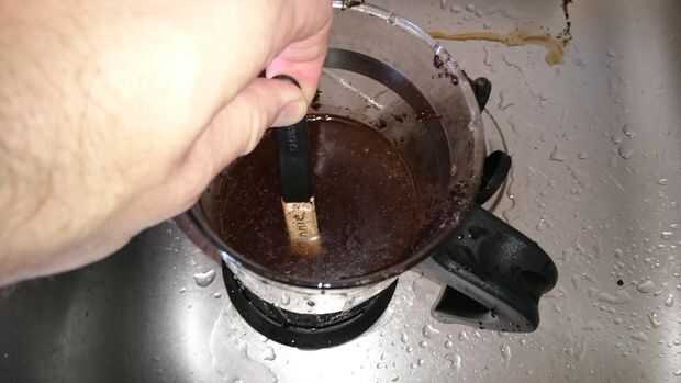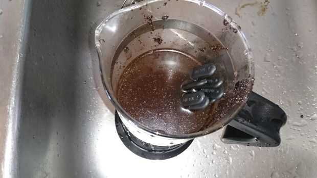Naturalmente la cinta parecía nueva, porque era, así que había empapado las selecciones de café y había rodado en posos de café. Esto hizo un buen trabajo de deshacerse del blanco puro. Dejo los picks decorados seco en mi fregadero ya que la cinta de fricción de la tela absorbe agua.
