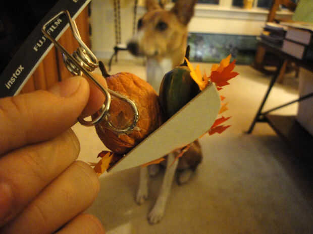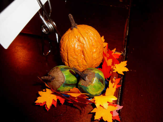 - Colocar un clip en la parte trasera de la calabaza de la nuez con una pistola de pegamento.