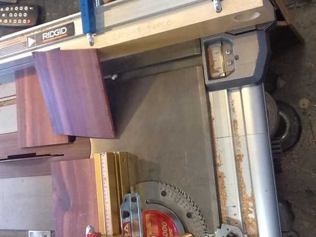 Cortar los dos exteriores el mismo ancho que el centro, pero cerca de 1.5" más. Luego Lije todas las piezas plana con grano 80.
