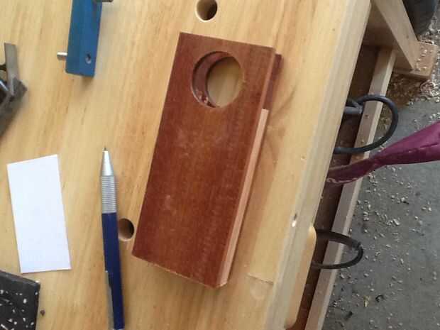 pero una vez que esté satisfecho con que el agujero debe ser de uso ese trozo cortado fuera del tablero de emparedado de medio y perforar con un 1.5" Forster bit... tener cuidado y tiene una placa debajo de la caja para evitar rasgar hacia fuera cuando eso poco va hacia el otro lado.