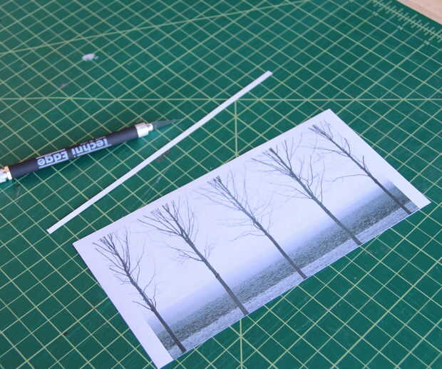 Recorte la parte inferior de la página. Si usted tiene un gran borde blanco en la parte superior, recorte hasta aproximadamente 1/8 de pulgada. Dejar un borde de 1/4-1/2 pulgada blanco en cada borde de la foto.