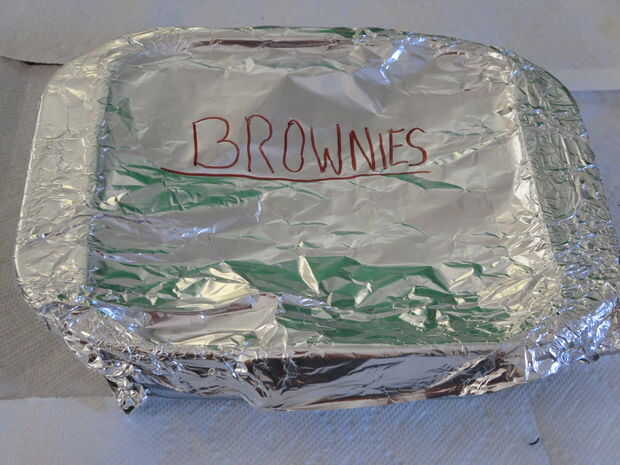 Consigue un trozo de papel aluminio que cubre completamente su bandeja brownie. Los lados deben cubrirse demasiado.