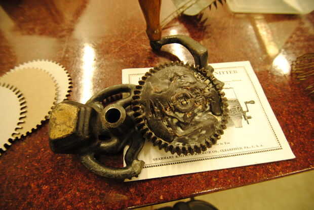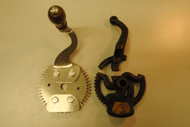 Conseguí una buena oferta pero tenía una manivela rota. Tuve que reparar la manivela para que funcione. Decidí probar echando la manivela del engranaje cónico roto pero me faltaba las piezas por lo que tuve que dos mitades del molde y cuchillo caliente soldar juntos. Echarlos en cera de la joyería va a utilizar la fundición a la cera perdida. La perspectiva de la fundición era demasiado trabajo así que abandoné ese camino.