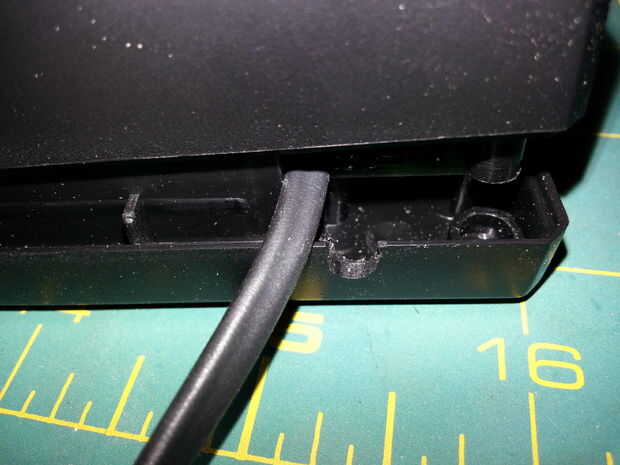 Corte dos agujeros en la caja del cargador para el interruptor y el cable al adaptador de pared.