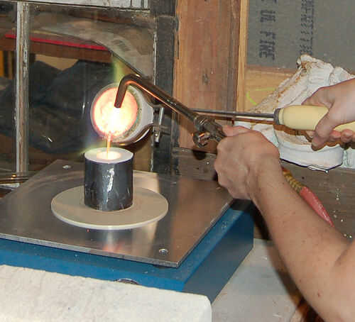 Colocar el crisol sobre el matraz - hacen que mantenga la antorcha en el metal. Quitar la antorcha puede producir oxígeno en y que es malo. Están vertiendo, mantenga el soplete en el metal y vierta rápidamente. Verter muy lentamente o moviendo el soplete puede hacer que el metal se congele y no funcionara el casting