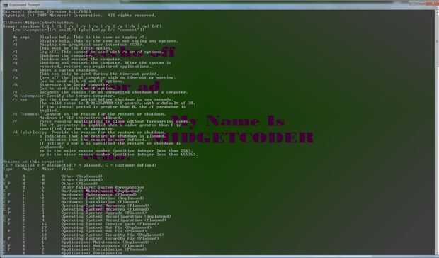 Si usted quiere ver en todos los tipos de cosas que puedes hacer con cierre tipo simplemente «Apagar» y en su pantalla va ser una gran cantidad de diferentes códigos que pueden ser utilizados con el apagado Código como -s que simplemente se apaga la computadora abajo cuando utilizado con -f y -t 00, eso es exactamente lo que son vamos a aprender hoy.