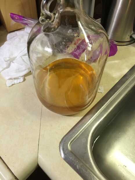 2. una vez que la miel está en la Damajuana de un galón, su agua de manantial y vierta aproximadamente 1/4 galón de agua en la Damajuana.