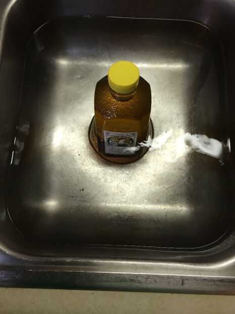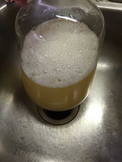 4. su mano o tapa sobre la boquilla de la Damajuana y agitar el mezclador de agua y la miel hasta que esté bien mezclado. La mezcla debe parecerse a la última foto en esta página.