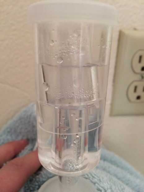 4. Llene la bolsa de aire hasta que la pieza central es flotante. Asegúrese de que usted no más llena la esclusa de aire de lo contrario se introducirá más agua al sistema que desea. La bolsa de aire debe asemejarse a la última foto en esta página.