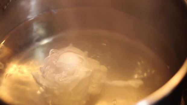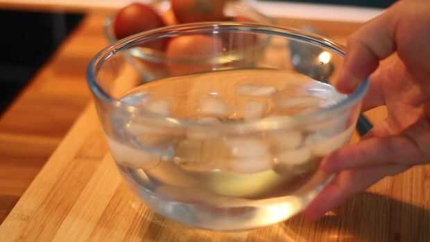 El huevo no tendrá mucho tiempo para cocinar así que mientras que es caza furtiva en él feliz manera (sólo 3-4 minutos) Haz un tazón de agua con hielo listo y ponga a un lado. El agua es el secreto de esta preparación de lote de los huevos y se detendrá la cocción lo que permite evitar un duro encima huevo cocido al recalentamiento.