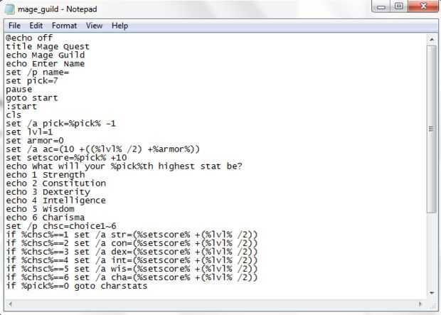 Hola a todos.Recientemente, yo he estado buscando alrededor de algunas cosas que hacer con la codificación del lote que Windows ofrece.Como el título indica, me he embarcado en la búsqueda masiva para hacer un buen juego de rol con lote. A partir de