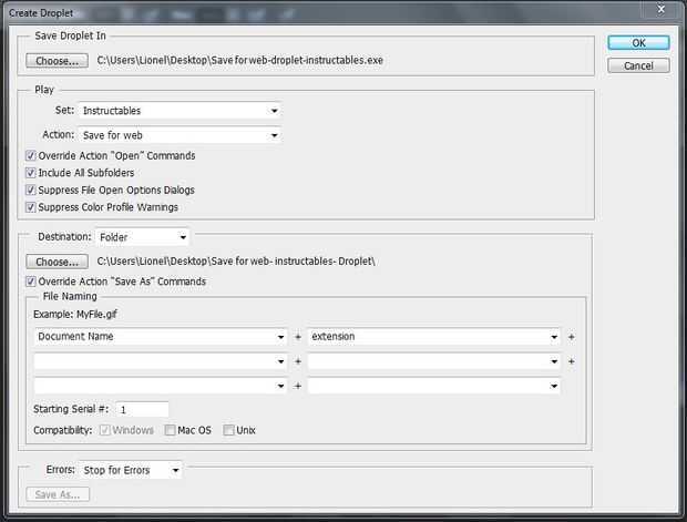 Imágenes directamente desde la cámara tendrá tamaño de archivo alta. Para hacer un instructable. las tareas repetitivas, como almacenamiento de 100 imágenes para web en Photoshop es lento y frustrante. Gotitas son drag-and-drop mini aplicaciones que