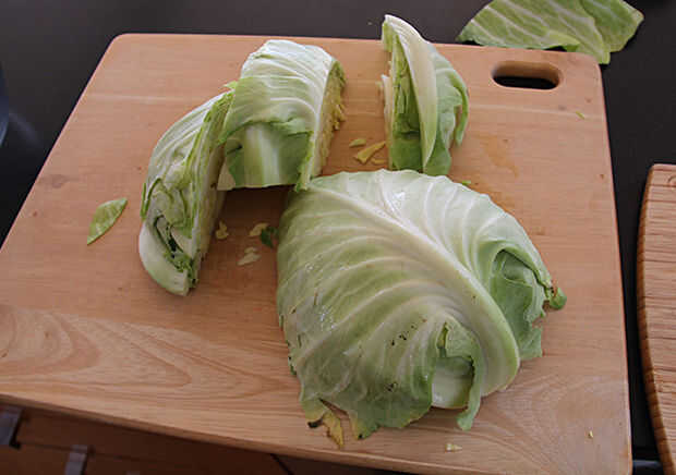 Quitar las hojas exteriores y limpie cualquier suciedad restantes pero no lave la col.
