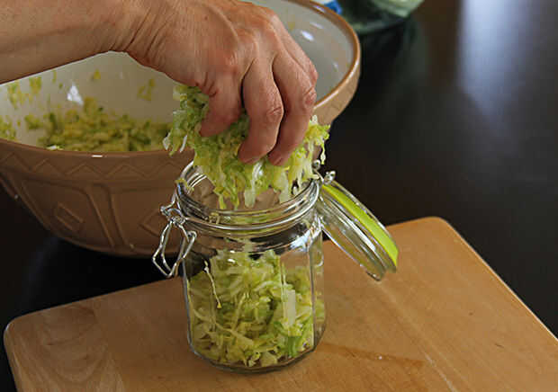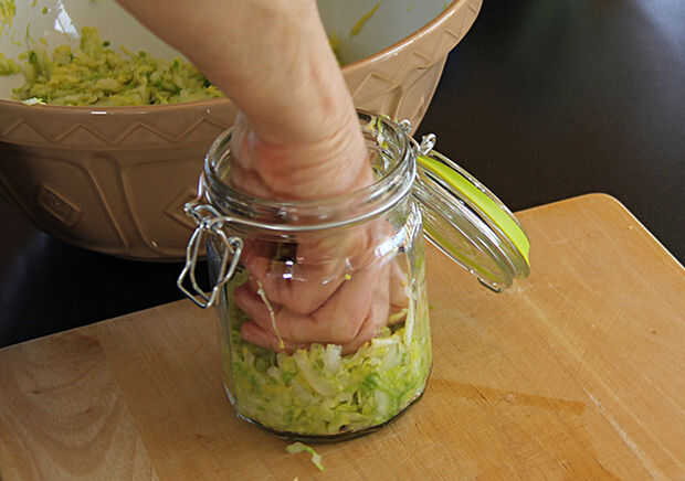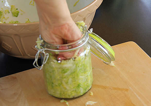 Repita hasta que casi la totalidad de la col en el tarro, que tan completo como sea posible.