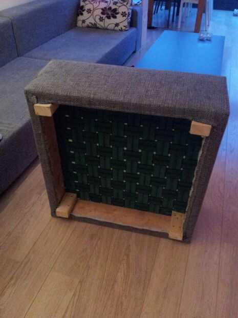 hice algunas investigaciones sobre cómo se fabrican los sofás y decidí construir mi propio después de ver muchos youtube videos y revisar varios sitios Web. Aquí son estructura y fotos. bien que aún haciendo un cojín de asiento independiente medición 80cmx80cmx35cm. y sofá 4 almohadas de medición 75cmx35cmx10cm.