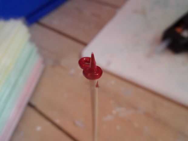 Poner los clips de s en un palo de barbacoa, pintar el clip rojo y dejar secar en un lugar estable, es decir, Portarrollos t.