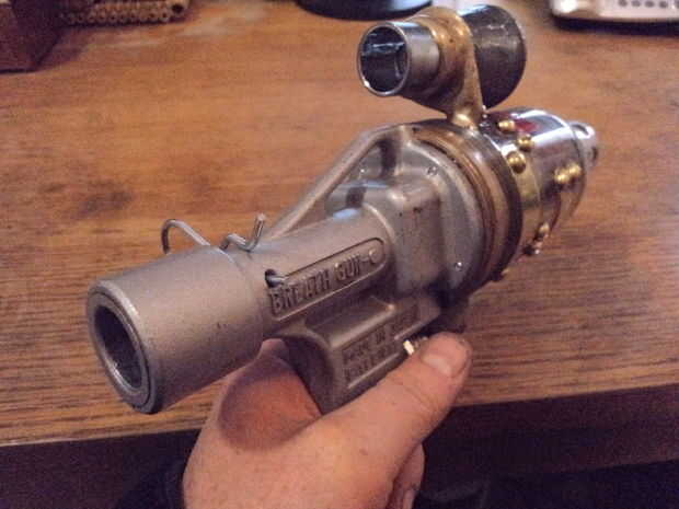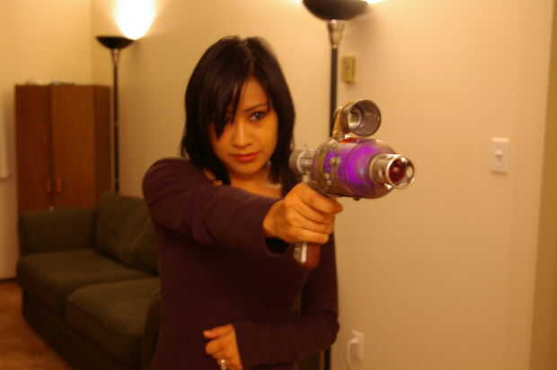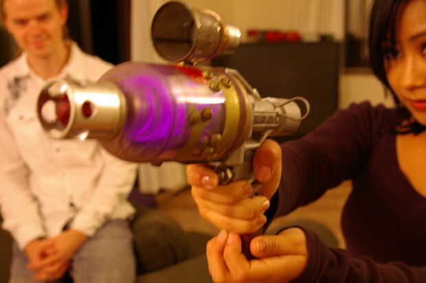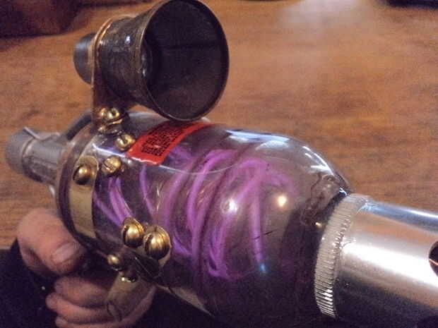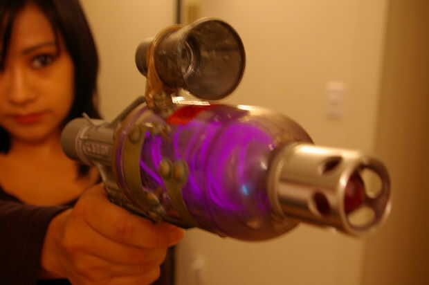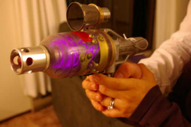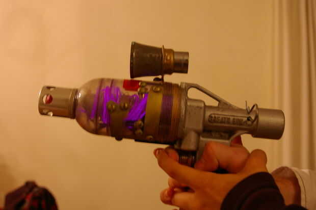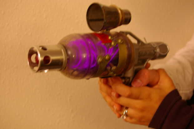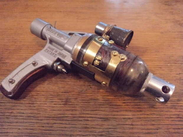 1. usted simplemente podría deslizarse cualquier fuente de luz en el cañón retirando el pasador en la parte posterior. Esto podría acomodar pequeñas luces flashes led finas, resplandor palos o incluso una pluma láser